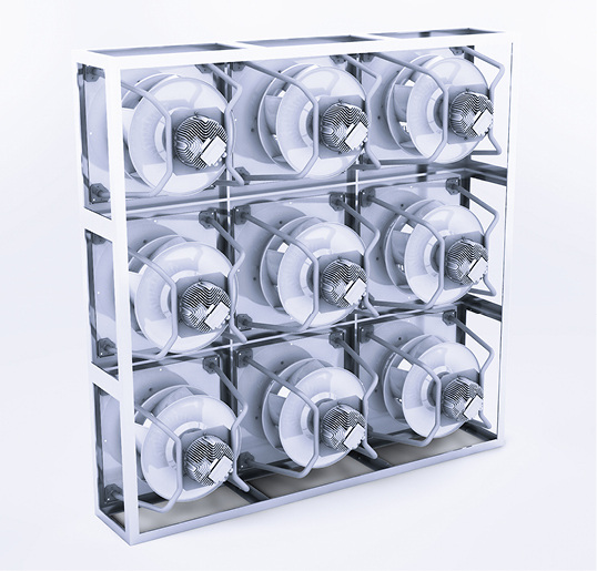 Damit das Konzept der freien Kühlung mit optimal ausgelegten FanGrids funktioniert, betrachtet ebm-papst zunächst die anwendungsspezifische Situation, beispielsweise den zur Verfügung stehenden Einbauraum, die Betriebspunkte oder die gewünschte Redundanz. Anhand der Lebenszykluskosten wird letztlich das System, also Art, Größe und Anzahl der zu verwendenden Ventilatoren, bestimmt. Zudem spielen bei der Auslegung der FanGrids immer der Abstand und die Anordnung eine wichtige Rolle. Daher die Faustregel: Je höher das Luftvolumen, umso größer die Abstände. Nur so werden die gewünschte Leistung und Effizienz erreicht.