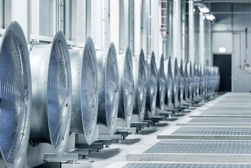 Um die kühle Luft in das Gebäude zu transportieren, werden jedoch riesige Luftmengen benötigt. In diesem Projekt fiel die Ventilatorenwahl auf den ZerAx-Axialventilator der Novenco A/S, Naestved (Dänemark), welcher die Energieverbräuche im Vergleich mit ähnlichen Produkten deutlich reduziert. Die Ventilatoren erzielten im Vergleich unerreichte Wirkungsgrade bei gleichzeitigem Einsatz von Hochleistungs-Frequenzumformern und ebensolchen Antriebsmotoren. Der deutlich geringere Schallpegel gegenüber den ursprünglich geplanten Freiläufern war ein weiteres Entscheidungskriterium. Novenco lieferte eine schlüsselfertige, automatisierte Lösung, einschließlich Überwachung und Installation. Die automatische Lösung basiert auf der Grundlage von früheren Tests und einem bereits in anderen Novenco-Bereichen erfolgreicharbeitenden System.Es handelt sich dabei um eine vollautomatische Stand-alone-Steuerung für jede ZerAx-Wand, mit Netzwerk-Verbindung zu allen anderen Maschinen in dem System, welches nicht nur die allgemeine Steuerung und Überwachung sicherstellt, sondern auch einen intelligenten Austausch des Betriebsstatus.Das System ist mit dem neuesten SPS-System ausgestattet.