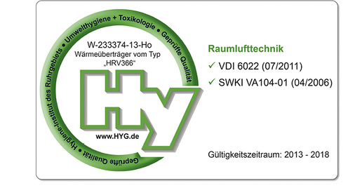 Hinsichtlich der Performance sollten hygienische Aspekte bei den Verfahren zur Feuchterückgewinnung nicht außer Betracht stehen, denn schließlich sprechen wir vom Lebensmittel Luft, von dem ein Mensch täglich ca. 18 kg als Raumluft konsumiert“. Die feuchteübertragenden Wärmeübertrager von Paul Wärmerückgewinnung wurden nach den hygienerelevanten Anforderungen der VDI 6022, Blatt 1, zertifiziert und tragen das Prüfsiegel des Hygieneinstitutes des Ruhrgebiets (Bild 3) .