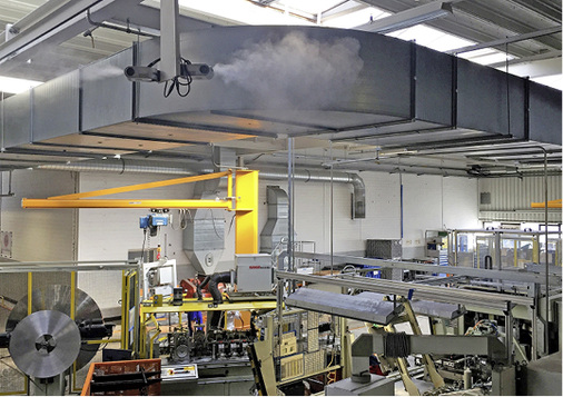 Diese Befeuchtungsmethode lässt sich in nahezu jedes Gebäude einbauen und funktioniert unabhängig von einer bestehenden zentralen Klimaanlage. Entschieden hat sich der Automobilhersteller für eine von der Deutschen Gesetzlichen Unfallversicherung (DGUV) zertifizierte Hochdruck-Luftbefeuchtungsanlage Draabe TurboFogNeo. Bei dieser Direkt-Raumluftbefeuchtung wird Wasser zunächst keim- und mineralfrei aufbereitet und danach über eine Hochdruckpumpe direkt zu den in den Fertigungshallen positionierten Luftbefeuchtern transportiert.