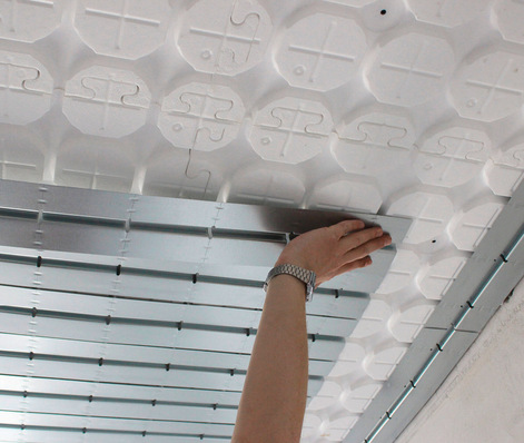 Nach der Einrüstung war es der ört-lichen Installationsfirma möglich, die gesamte Zehnder COMO-Anlage inklusive Lüftungsoptimierung innerhalb eines Monats zu installieren. Dabei wurden die Deckensegel im Erdgeschoss an der Betondecke verankert. Im Obergeschoss, welches über eine Trapezblechdecke verfügt, kamen spezielle Halterungen zum Einsatz, die Zehnder eigens für diese Deckensituation anbietet.