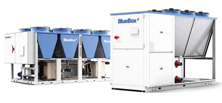 Die 4- Leiter-Multifunktionseinheit Bluebox Omicron Sky S4 R5 (40 - 800 kW) eignet sich für den Einsatzbereich - 15 °C bis 40 °C Außenlufttemperatur, um separate Kaltwassererzeuger und Wärmepumpen zu ersetzen und in einer Einheit zu kombinieren Auch in Anwendungen, die einen besonders kleinen CO2- Fußabdruck hinterlassen sollen. Die Einheit verfügt über das Kältemittel R 454B (GWP = 466), eine Warmwasserbereitstellung bis 55 °C und optional integrierte Hydraulikmodule. Sie ist nach Einzelprüfung förderfähig nach BEG und erreicht einen TER bis 7,94 (Total Expense Ratio = Gesamtkostenquote). www.swegon.com