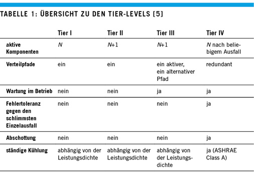Die Redundanzstufe I stellt die geringsten Anforderungen an die Versorgungssicherheit. Es sind keine redundanten Komponenten installiert. Dagegen stehen in Stufe II nach dem (n+1)-Prinzip Ersatzkomponenten für die Stromerzeugung und die Kälteerzeugung zur Verfügung. Dies ermöglicht z. B. die Kompensation des Ausfalls einer Kompressionskältemaschine. In der Redundanzstufe III werden die Kälteerzeugung und die Stromerzeugung bzw. die Verteilung vollständig redundant ausgelegt. Selbst bei einem Ausfall des kompletten Systemstrangs kann der redundante Strang den reibungslosen Betrieb garantieren. Bei höheren Anforderungen entstehen durch die Betriebsbereitschaft zusätzliche Lasten. Banken realisieren aufgrund des Geschäftsbetriebs eine sehr hohe Absicherung (z. B. Tier-Level IV). Bei universitären Hochleistungsrechnern ( Bild 3 ) wird das verfügbare Budget vorzugsweise in Hardware investiert. Ausfälle wirken sich nicht so gravierend aus, sodass man Tier-Level I umsetzt.
