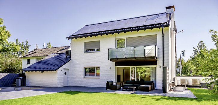 Zur Beheizung des Wohnhauses wurden zwei Luft-Wasser-Wärmepumpen sowie eine Fußbodenheizung installiert. Ergänzt wird die Heiztechnik durch sechs Klimageräte, die die Räume im Sommer kühlen. Durch eine Photovoltaikanlage mit einer Gesamtleistung von 12 kWp inklusive eines 7,5 kW Speichers kann das Haus autark mit Strom versorgt und CO2-neutral beheizt und gekühlt werden.