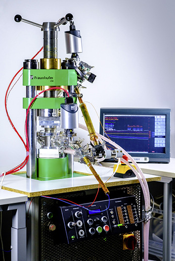 Kalorische Kühlsysteme haben das Potenzial, sich zur umweltfreundlichen Alternative zu bisher gängigen Kühlsystemen zu entwickeln. Bei elastokalorischen Systemen liegt die größte Herausforderung in der Langzeitstabilität des Materials bei gleichzeitig hoher Leistungsdichte. Ein von Fraunhofer IPM im Fachmagazin Communications Physics präsentiertes System übertrifft die Langzeitstabilität bisheriger Systeme um Größenordnungen – und erreicht zugleich eine hohe spezifische Kühlleistung. Kalorische Kühlsysteme bieten eine vielversprechende, umweltfreundliche Alternative zu Kompressionskälte. In elastokalorischen Systemen erwärmt sich das Material bei mechanischer Belastung und die Wärme kann abgeführt werden. Bei anschließender Entlastung kühlt das Material unter die Ausgangstemperatur ab – so lässt sich ein Kühlzyklus realisieren. Die meisten elastokalorischen Systeme arbeiten mit Zugbelastung. Allerdings verschleißt das Material durch die Zugbelastung vergleichsweise schnell. Wird die Belastung durch Druck erzeugt, weisen die Materialien eine höhere Langzeitstabilität auf – jedoch auch ein ungünstiges Verhältnis zwischen Oberfläche und Volumen. Dadurch kann die Wärme schlechter übertragen werden. Mit einem patentierten Ansatz ist es Fraunhofer IPM nun gelungen, dieses Dilemma zu lösen: Erfolgt der Wärmeübergang latent über das Verdampfen und Kondensieren eines Fluids wie in einem Wärmerohr, ist dieser um Größenordnungen höher als bei vergleichbaren Systemen mit anderen Wärmeübergangsmechanismen.