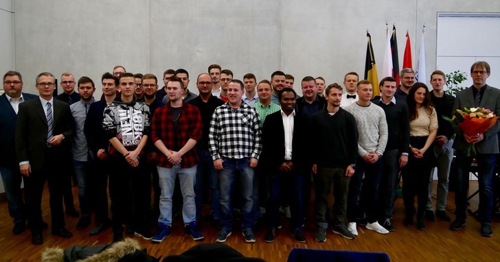 Wenig später folgten am 14. Februar dann 51 neue Mechatroniker und eine Mechatronikerin in Hessen, die bei einer Feierstunde im Barbarossasaal des Main-Kinzig-Forums Gelnhausen vom stellvertretenden Innungsgeschäftsführer Michael Gölz ihre Gesellenbriefe und Prüfungszeugnisse erhielten. Die beste Prüfung gelang Michael Swiridow von der Firma Viessmann, der ebenfalls einen Rollgabelschlüssel und einen Gutschein erhielt. Innungsgeschäftsführer Jörg Peters sprach nach Grußworten von Obermeister Jürgen Kaul und Rainer Flach die angehenden Mechatroniker*innen frei.