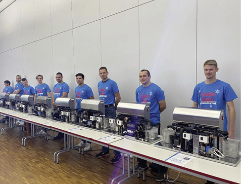 Die besten Mechatroniker für Kältetechnik aus allen Bundesländern wurden zum Bundesleistungswettbewerb (BLW) eingeladen. In diesem Jahr fand der BLW wie bereits 2020 an der Bundesfachschule Kälte-Klima-Technik (BFS) in Harztor statt. Aufgrund der zentralen Lage in Deutschland und der Räumlichkeiten, verbunden mit eigener Kantine und nahegelegenen Unterkünften, bot sich die BFS als Austragungsort auch unter Corona-Bedingungen an. Die konkreten Vorbereitungen begannen im Frühjahr 2021 mit der Abstimmung zum Prüfungsstück. Die BFS und die Firma Rochhausen Kältesysteme GmbH aus Drebach (Scharfenstein/Erzgebirge) entwarfen in enger Zusammenarbeit eine kompakte R290-Kälteanlage, den sogenannten „Coolen Zweizylinder“ zur Kühlung von zwei Getränkeflaschen. Nach intensiver Planung und Vorbereitung stand am 5.11.2021 das Material für den BLW in Harztor bereit. Neben der Firma Rochhausen Kältesysteme GmbH unterstützten die Firma Danfoss und die Firma Embraco den BLW 2021. Am Montag, den 8. November waren gegen 14.30 Uhr die neun Teilnehmer in Harztor eingetroffen. Nach einer kurzen Begrüßung und einem Rundgang durch die BFS gab es eine Sicherheitsunterweisung zum Arbeitsschutz und zum Umgang mit Propan. Im Anschluss konnten die Arbeitsplätze vorbereitet und das Werkzeug für den nächsten Tag bereitgelegt werden. Nach einem gemeinsamen Frühstück an der BFS starteten die Teilnehmer am 9. November um 8.00 Uhr. Sie hatten zwei Tage Zeit für den Bau des „Coolen Zweizylinders“. Der 1. Bundessieger ist Frederik Stiegen (Rainer Stiegen Kälte-, Klima-, Schankanlagen, Bad Harzburg) aus Niedersachsen. Platz 2 geht an Luca Doster (Doster GmbH, Nürtingen) aus Baden-Württemberg und auf den dritten Platz steht Marvin Herth (Service Kälte Saar e.K., Spiesen-Elversberg )aus dem Saarland.