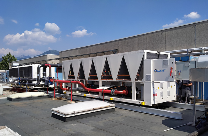 Die Lösung wird durch einen SCREWLine4-i-Wasserkühler mit dem Kältemittel R1234ze und zwei Kältemittelkreisläufen dargestellt, die jeweils mit einem kompakten Schraubenverdichter mit Wechselrichter ausgestattet sind. Er ermöglicht es, mit SEER sehr hohe saisonale Wirkungsgrade zu erzielen, indem er den Betrieb an die tatsächlichen Anforderungen des Systems anpasst.