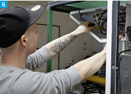 Propan ist ein Reinstoffkältemittel und kann sowohl flüssig als auch gasförmig ge-füllt werden. Die Dichtheitsprüfung muss mit einem elektronischen Lecksuchgerät durchgeführt werden, welches für Propan- bzw. Methangas geeignet ist. Dies sind nur einige wichtige Punkte, die beim Umgang mit dem brennbaren Kältemittel beachtet werden müssen und die die Berufsschüler beimAufbau der Kälteanlage erlernen konnten.