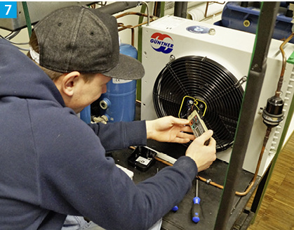 Bereits beim Aufbau haben die Auszubildenden erfahren, welche Besonderheiten bei der Montage zu beachten sind. Ein thermostatisches Expansionsventil für R 290 war bis dato noch nicht auf dem Markt, gleichwertig konnte, wie in der Praxis häufig angewendet, auch ein TEV für R 22 eingebaut werden.