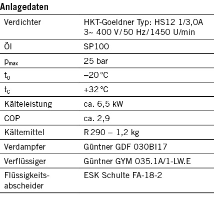 Natürlich war die Auslegung der Anlage eine besondere Herausforderung. Dürfen wir eine Propan-Kälteanlage in unserem Werkstattbereich überhaupt betreiben? Welche sicherheitstechnischen Voraussetzungen müssen hier erfüllt sein? Hierzu war es notwendig, die maximal zulässige Füllmenge in Bezug auf unsere Raumgröße zu berechnen. In der DIN EN 378-1 Anhang C3 gibt es hierzu Berechnungshinweise bzw. Tabellen zum Mindest-Raumvolumen beim Einbau der Anlage.