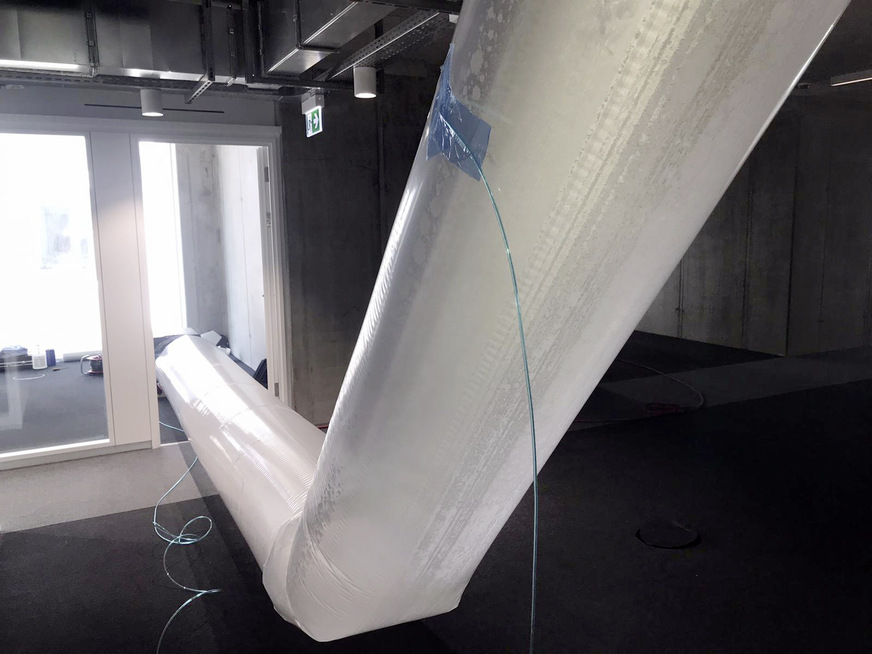 Nach Fertigstellung der Anlage zeigte sich bei einer Dichtheitsprüfung, dass in den Steigschächten statt der geforderten Dichtheitsklasse C nur Dichtheitsklasse A erreicht wird. Wie von Anfang an eingeplant, folgte im nächsten Schritt die Abdichtung des gesamten Systems mit dem Aeroseal-Verfahren.