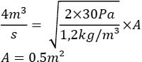 ➔ Erforderliches Luftvolumen bei 1 m/s Strömungsgeschwindigkeit: 1 m/s x 3,125 m² = 3,125 m³/s