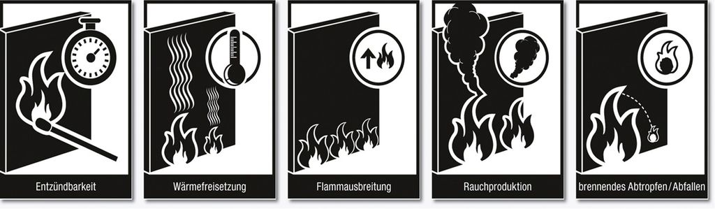 Die Euroklasse E wird nach EN ISO 11 925-2 im Entzündbarkeitstest geprüft. Für die Klassen A2 bis D ist eine Klassifizierung zusätzlich nach dem neuen SBI-Prüfverfahren (Single-Burning-Item-Test) nach EN 13823 erforderlich.