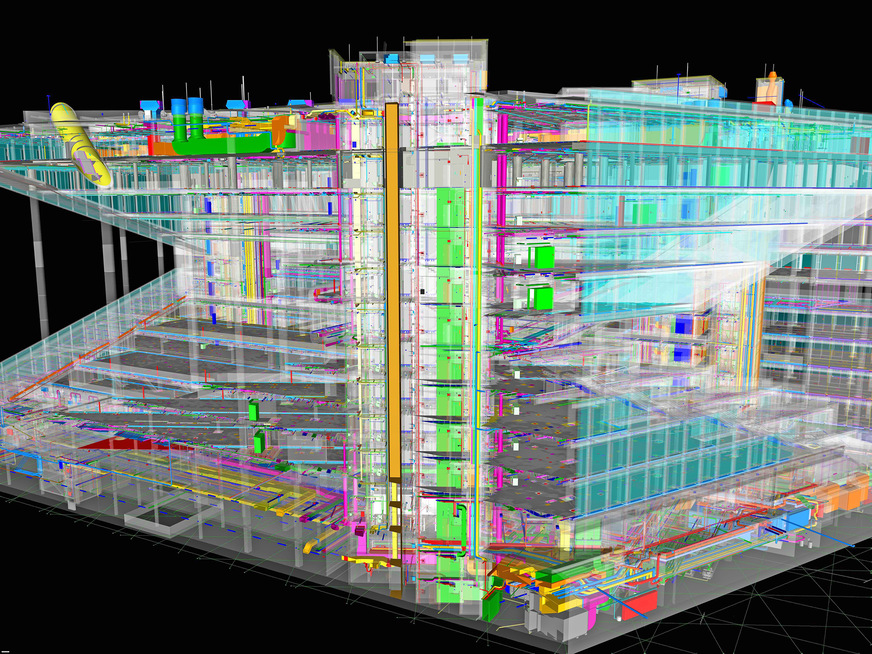 Dafür, dass das Medienzentrum nicht nur optisch, sondern auch unter Nachhaltigkeitsaspekten überzeugen kann, haben im Bauprozess viele Gewerke beigetragen. Beispielsweise war Caverion Deutschland für die Montage der Raumlufttechnik zuständig. Zum Leistungsumfang zählte unter anderem der Einbau von Klima- und Lüftungsanlagen mit einer Gesamtleistung von circa 325 000 m3 pro Stunde. Darüber hinaus verantwortete das Unternehmen die Montage der Entrauchungsanlage. Um den Energieverbrauch für die Belüftung so gering wie möglich zu halten und so die angestrebte DGNB Zertifizierung in Gold zu unterstützen, wurden 44 Wärmerückgewinnungssysteme mit Rotationswärmeübertragern als Kreislaufverbundsystem installiert.