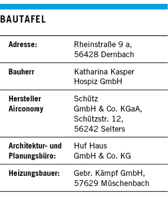 Das Hospiz St. Thomas bietet die Möglichkeit, die letzte Lebensphase in familiärer und wohnlicher Atmosphäre zu verbringen. Es hat acht Zimmer und einen Gemeinschaftsbereich und wurde in der für Huf Haus typischen Fachwerkarchitektur aus Holz erstellt. Großzügige Glasflächen lassen das Tageslicht herein und schaffen ein lichtdurchflutetes Ambiente, das mit den warmen und hellen Tönen des Farbkonzepts harmoniert. Hinsichtlich der technischen Gebäudeausrüstung gab es konkrete Anforderungen: So musste ein permanenter Luftaustausch mit den für Krankenzimmer typischen Luftmengen nach DIN 1946-4 gewährleistet werden. Darüber hinaus ging es den Planern um eine bestmögliche Frischluftverteilung bei minimalem Energieverbrauch. Auch sollte die Lüftung absolut zugfrei und geräuschlos realisiert werden. Zudem sollten Temperaturkomfort und Lufthygiene ein Spitzenniveau erreichen.