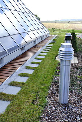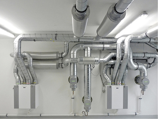 Um die Effizienz des Lüftungssystems weiter zu steigern, wurden die Luft-/Erdwärmeübertrager LEWT von Helios installiert. Bei diesem System dient die über das Jahr gesehen relativ konstante Temperatur des Erdreiches im Winter der Erwärmung der Zuluft und macht ein Vorheizregister überflüssig. Darüber hinaus wird an heißen Sommertagen ein angenehmer Kühleffekt erreicht, indem der im Gerät integrierte Bypass die kühlere Luft am Wärmeübertrager vorbeiführt. Somit gelangt die kühle Luft direkt in die Räume und sorgt für eine komfortable Temperierung.