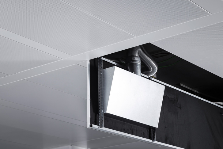 Je nach Anforderungen können die Zu- und Abluftelemente AirBox S (Supply Air) bzw. AirBox E (Exhaust Air) in jeweils drei definierten Typen mit unterschiedlichen Volumenströmen gewählt werden. Neben den definierten Standardgrößen sind hier auch projektbezogene Ausführungen möglich. Als Voraussetzung dient an dieser Stelle eine Perforation des Deckensystems mit einem freien Querschnitt von mindestens 13 Prozent, um die Lüftungskomponenten an die Rückseite der Deckenplatte montieren zu können. Die Zu- und Abluftelemente können mit den Lindner LMD Metalldecken sowie Plafotherm Heiz- / Kühldecken kombiniert werden – und das in geschlossenen Metalldecken, ebenso wie in Deckensegeln.