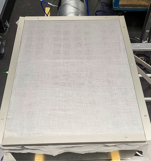 Aus optischen Gründen sollten die Wandluftdurchlässe Induquell mit einem luftdurchlässigen Stoff überzogen werden. Dafür standen mehrere Stoffmuster zur Wahl, die es im hauseigenen Strömungslabor von Kiefer Klimatechnik auf ihre Strömungseigenschaften hin untersucht wurden. Die Laborversuche sollten experimentell überprüfen, welchen Einfluss die verschiedenen Stoffbespannungen auf die Funktionalität der Luftdurchlässe und insbesondere auf Luftvolumenstrom sowie die Luftverteilung im Raum haben. Dafür wurde zunächst ein Auslassmuster in Sonderbauform erstellt und anschließend ein Musterraum zur Simulation von Personen-/ und Maschinenlasten aufgebaut.