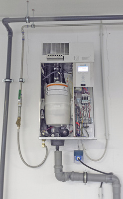 Zur Lösung wurde nach einem Produkt gesucht, das die geforderten Leistungen abdeckt und sich formschön in die Räumlichkeiten integriert. Ferner waren eine nahe Anbindung des Installateurs und eine regionale Verfügbarkeit des Herstellers die wichtigsten Kriterien. Dr. Hönle nahm Kontakt zu der in Gräfelfing ansässigen Firma Elektro Jung GmbH auf, weil diese ein Konzept zur Raumluftbefeuchtung erarbeiten sollte. Nach einem Vor-Ort-Termin und eingehender Betrachtung aller Anforderungen empfahl der Fachbetrieb Elektroden-Dampfbefeuchter von DriSteem (Serie XTP) einzusetzen, die von der Kaut in Deutschland vertrieben werden.