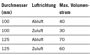 Für Wohnbereiche sollten die folgenden maximalen Volumenströme eingehalten werden, insbesondere um Strömungsgeräusche an Ventilen zu minimieren: