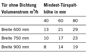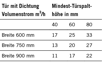Türspalt entsprechend den Mindestanforderungen nach DIN 1946-6: