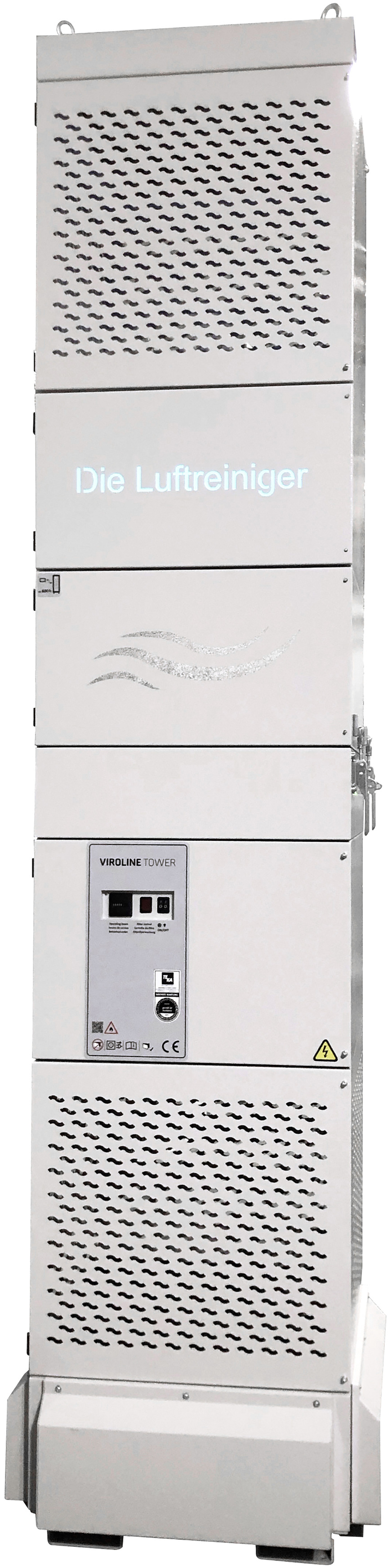 Der zentrale Luftreiniger Tower (628 x 628 x 3200 mm, B x T x H) kann großflächig Aerosole aufnehmen und filtern. Das in schlanker Modulbauweise vorliegende Gerät aus pulverbeschichtetem Stahlblech ist mit einem maximalen Volumenstrom von 3000 m³/h für die Reinigung belasteter Luft in weitgehend geschlossenen Arealen wie Kaufhäusern, Bahnhofs-, Flughafen-, Sport- und Gewerbehallen geeignet. Eine energiesparende Arbeitsweise und ein Platzbedarf von lediglich 1 x 1 m sind weitere Merkmale.