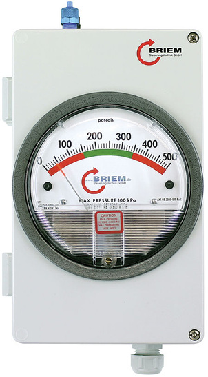 Beim Filterüberwachungs-Set von Briem handelt es sich um ein analoges Anzeigeinstrument mit einem Schaltkontakt, das direkt an der RLT-Anlage montiert wird. Die Sonden werden jeweils vor bzw. nach den Filtern angebracht und können dadurch die Druckdifferenz aufnehmen. Durch die farbige Skala ist der Filterzustand sofort visuell erkennbar. Der Schaltkontakt ermöglicht die Signalweitergabe. Das Gerät eignet sich sowohl für die Erstausrüstung als auch für die Umrüstung vorhandener Anlagen. Merkmale sind eine hohe Zuverlässigkeit, Robustheit, Langlebigkeit und Wartungsfreiheit. -