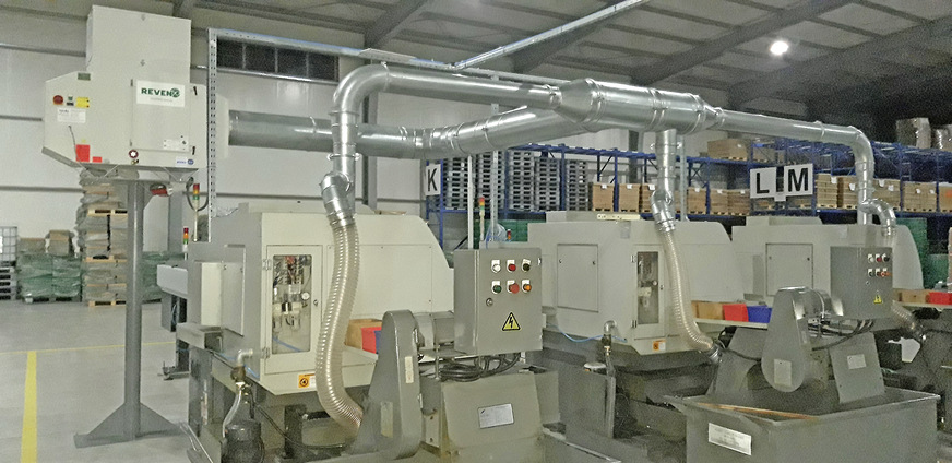 Für spanende und umformende Metallverarbeiter stehen hocheffiziente Öl- und Emulsionsnebelabscheider bereit, beispielsweise von Rentschler Reven. Sie sind bei Bedarf in der Lage, luftgetragene Mikropartikel selbst im Nanobereich zuverlässig zu entfernen. Die kompakten Abscheider werden entweder jeder Maschine zugeordnet (Stand-Alone-Verfahren) oder der Anwender entscheidet sich für eine Zentralabsaugung mit einem Sammelkanal und einem Zentralabscheider.