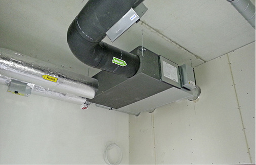Neben einer Versorgung über das städtische Fernwärmenetz zur Abdeckung der Heizwärmegrundlast (insgesamt hat das Gebäude einen rechnerischen Wärmebedarf von nur 80 kW), ist hier besonders das Lüftungskonzept hervorzuheben. Während die ursprüngliche Planung die Ausrüstung mit konventioneller Lüftung vorsah, konnte das ausführende Fachhandwerksunternehmen den Investor von den Vorteilen eines ganzheitlichen Konzepts mit dezentralen Lüftungsgeräten von Mitsubishi Electric überzeugen.