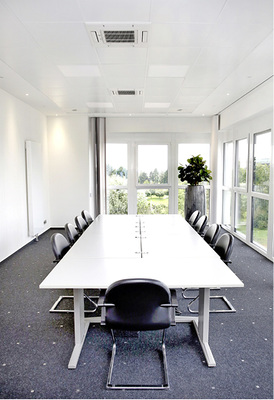 Um die Luftqualität im Gebäude sowie die Leistungsfähigkeit der sich in den Räumen aufhaltenden Personen zu gewährleisten, ist in dem Büroneubau eine kontrollierte Be- und Entlüftung erforderlich. Statt wie vorgesehen ein konventionelles Zentrallüftungsgerät auf dem Dach installieren zu lassen, setzte der Investor auf ein Konzept mit dezentralen Lüftungsgeräten. Diese ermöglichen eine horizontale Luftverteilung. Dadurch entfallen die für Zentrallüftungsgeräte üblichen vertikalen Schächte und die Maßnahmen zum vorbeugenden Brand- und Schallschutz (mit ihrem hohen Investitions- und späteren Wartungsaufwand) vollständig.