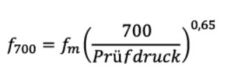 Auch bei der Prüfung in Überdruck müssen die Leckluftraten auf den Prüfdruck von 700 Pa umgerechnet werden, wenn der Prüfdruck davon abweicht. Die Formel dazu lautet: