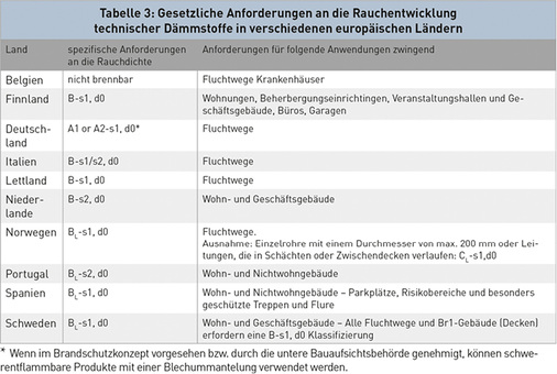 Viele europäische Länder haben die An- forderungen an die Rauchentwicklung der eingesetzten Bauprodukte bereits deutlich verschärft. So dürfen beispielsweise in Schweden in sogenannten Br1-Gebäuden, das sind Gebäude, die eines besonderen Brandschutzes bedürfen, wie Hotels oder auch Krankenhäuser, nur technische Dämmstoffe eingesetzt werden, die mindestens die Brandklasse B/BL-s1, d0 erreichen. Mit seinem Armaflex-Ultima-Sortiment bietet Armacell ein flexibles, geschlossenzelliges Produkt mit der Brandklassifizierung B/BL-s1, d0, mit dem diese Anforderungen erfüllt werden können ( Tabelle 3 ).