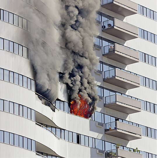 Auch für die Industrie haben Brände fatale Folgen: Jeder dritte Brand führt nach Angaben der Versicherungswirtschaft zu Sachschäden von mehr als 500 000 Euro. Insgesamt entsteht in Europa jährlich ein Sachschaden von 126 Mrd. Euro durch Brände. Auch hier gilt: Rauchgase richten häufig einen größeren Schaden als das Feuer selbst an. Die Folgeschäden durch Ruß und korrosive Gase belaufen sich bei Großschäden auf über 50 Prozent der Gesamtkosten. Von den Folgekosten durch Betriebsausfälle ganz zu schweigen. Die Vermeidung von Schäden durch Rauch und Ruß an Sachwerten ist im Industriebau in der Regel kein ausgewiesenes Schutzziel.