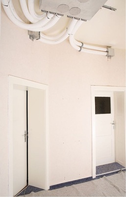 Zehnder: Die Luftmengenberechnung wurde anhand der vorhandenen Grundrisse erstellt und die Luftmengen in Abhängigkeit der Nutzung der einzelnen Räume ermittelt. Um sicherzustellen, dass die Anlage den im Vorfeld berechneten Luftmengen gerecht wird, sollten Leitungen nicht entfernt werden. Die Platzierung der Auslässe kann hingegen individuell gewählt werden. Idealerweise sollten diese tendenziell diagonal zur Überstromöffnung meistens also zu den Türen hin angeordnet sein.