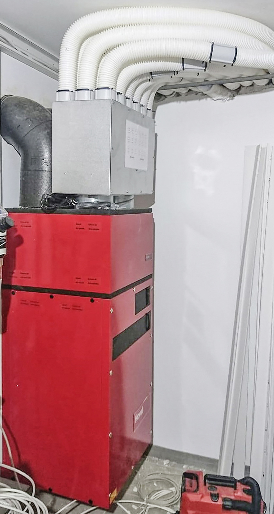 Meist werden beim Wohnungseinsatz die Lüftungsgeräte in einem innenliegenden Abstellraum installiert. Außen- und Fortluftleitungen werden dann oft über lange Strecken in Abkofferungen durch Wohnräume geführt. Neben hohen Energieverlusten und dem nicht geringen Platzaufwand besteht bei solchen Lösungen immer das Risiko, dass es bei unzureichender Wärmedämmung zu Feuchteschäden kommt.