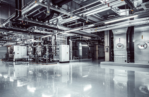 Die Reinraumklasse D schreibt einen sechsfachen Mindestluftwechsel pro Stunde vor. Im Betrieb in Ingelheim wird allerdings ein noch höherer Luftwechsel gefahren. Um die Energieeffizienz zu steigern, wird dafür in der arbeitsfreien Zeit der Luftwechsel reduziert. Konkret arbeitet die Fabrik im Einschichtbetrieb in einer fünf-Tage-Woche. In der übrigen Zeit wird der Luftwechsel abgesenkt, was Strom sowie Kühl- und Heizenergie einspart. Der Luftvolumenstrom jedes einzelnen Produktionsraumes lässt sich über die Gebäudeleittechnik einstellen.