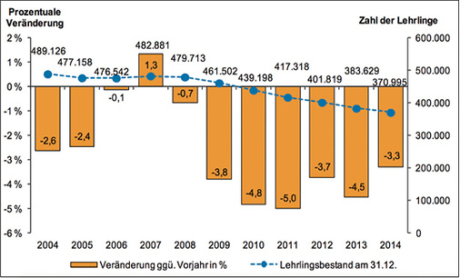 23.09.2015 – Eine im August vom Heinz-Piest-Institut (HPI) veröffentlichte Studie Überbetriebliche Unterweisung im Handwerk im Jahr 2014“ dokumentiert erneut einen Zuwachs der Inanspruchnahme überbetrieblicher Unterweisungsmaßnahmen in der Fachstufe im Bereich Mechatroniker/in für Kältetechnik – entgegen dem allgemeinen Trend im Handwerk. So wuchs gegenüber 2013 die Zahl der Lehrgangsteilnahmen von 2 890 auf 3 014, die Zahl der unterwiesenen Lehrlinge stieg von 2 492 auf 2 615 und das Schulungsvolumen legte um 5,18 Prozent zu. Die Zahl der im Kälteanlagenbauerhandwerk abgeschlossenen Ausbildungsverträge konnte von 1 104 auf 1 207 gesteigert werden. Der Bundesinnungsverband (BIV) sieht dies als Bestätigung seiner Nachwuchskampagne und will demnächst das einschlägige Materialangebot mit neuen Ideen ergänzen. www.biv-kaelte.de