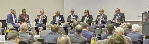 Auf Initiative des Bundesindustrieverbands Technische Gebäudeausrüstung e. V. (BTGA) fand am 27. und 28. November 2017 in Berlin das 1. TGA-Wirtschaftsforum statt. Maßgebliche Vertreter der Politik, hochkarätige Referenten aus den unterschiedlichen Disziplinen und rund 125 Teilnehmer trugen dazu bei, diese Premiere erfolgreich zu gestalten. Der BTGA veranstaltete das TGA-Wirtschaftsforum gemeinsam mit dem Fachverband Gebäude-Klima e. V. (FGK) und dem Herstellerverband Raumlufttechnische Geräte e. V. (RLT-Herstellerverband). Weitere Partner waren die 1. Wissenschaftliche Vereinigung Projektmanagement e. V. (1. WVPM), der Hauptverband der Deutschen Bauindustrie e. V. und der Zentrale Immobilien Ausschuss e. V. (ZIA). Das nächste TGA-Wirtschaftsforum soll 2019 stattfinden. An der Podiumsdiskussion Die TGA als Buhmann im Bauprozess“ nahmen teil (von links:) Prof. Dr.-Ing. Michael Bauer, Manfred Kölbl, Thomas Lehmann, Karl-Walter Schuster, Prof. Dr. Klaus Eschenbruch, Prof. Dr.-Ing. Norbert Preuß, Klaus Ringsleben und Hermann Sperber.