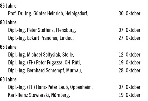 Der Deutsche Kälte- und Klimatechnische Verein e. V. (DKV) verzeichnet aus dem Kreis seiner Mitglieder folgende Geburtstagsjubiläen: