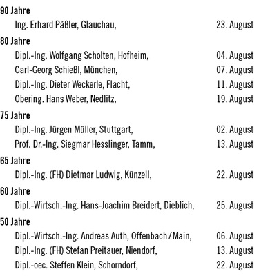 Der Deutsche Kälte- und Klimatechnische Verein e. V. (DKV) verzeichnet aus dem Kreis seiner Mitglieder folgende Geburtstagsjubiläen: