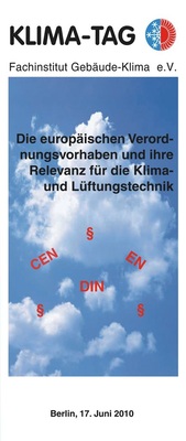 17.05.2010 Das Fachinstitut Gebäude-Klima e. V. veranstaltet am 17. Juni 2010 im Hotel Mövenpick in Berlin den 4. Klima-Tag, in diesem Jahr zum Thema „Die europäischen Verordnungsvorhaben und ihre Relevanz für die Klima- und Lüftungstechnik“. Der Klima-Tag widmet sich den aktuellen Vorhaben und versucht, deren Einfluss auf die Raumlufttechnik in seinem gesamten Spektrum darzustellen. Für den Klima-Tag konnten hochrangige Experten der europäischen und nationalen Normung gewonnen werden. https://www.fgk.de/