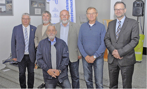 Am 22. Juni 2018 feierte die Sächsische Kältefachschule (SKF), Reichenbach, ihr 25-jähriges Bestehen. Innungsobermeister Wilfried Otto (l.) begrüßte die zahlreichen Gäste, darunter Reichenbachs Oberbürgermeister Raphael Kürzinger (r.), erinnerte an die Gründungsprobleme und bedankte sich bei den Männern der ersten Stunden, u. a. Rudolf Beer (4. v. l.), Peter Mickan (3. v. l.) sowie Fredo Georgie (2. v. l.). Joachim Naumann (unten), der erste Schulleiter der SKF, gab anschließend einen Einblick in die Details des Beginns und der kontinuierlichen Entwicklung der Schule.