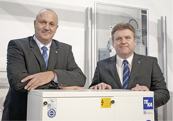 Die Teka Absaug- und Entsorgungstechnologie GmbH in Velen [im Bild die Geschäftsführer Erwin Telöken (l.) und Jürgen Kemper]konnte 2017 Umsatzzuwächse vor allem für die Airtracker-Produktfamilie verbuchen, die eine im Industrie-4.0-Stil vernetzte digitale Prävention am Arbeitsplatz ermöglicht. Für das selbst entwickelte digitale Raumluftmonitoring-System, mit dem sich die Qualität der Raumluft automatisch kontrollieren und steuern lässt, gab es international Anerkennung. Damit die neue Produktgeneration zur Marktreife gebracht werden konnte, hatte Teka die Entwicklungskosten in den vergangenen zwei Jahren gebündelt für die neue Innovationsstrategie eingesetzt. Auch im Kerngeschäft, der Herstellung von Absaug- und Filteranlagen, konnte Teka den Exportanteil im vergangenen Geschäftsjahr deutlich ausbauen. www.diekaelte.de/Gentner.dll/PL_102988_804041
