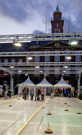 Attraktionen wie Lattlschießen und Curling kennt man eigentlich nur in Wintersportgebieten. Die Stadtmarketing Herne GmbH nutzte diese Nische und holte diese Attraktionen ins Ruhrgebiet. Jährlich verwandelt sich nun der Herner Rathausplatz in eine 25 m lange und 10 m breite Eisstockbahn. Um solche Eisbahnevents zu realisieren, braucht es Erfahrung, Delta-Temp hilft seit 2011 bei der Umsetzung des aufwendigen Projekts. Der Aufbau einer mobilen Eisbahn durch Delta-Temp gestaltet sich immer in folgenden Schritten: