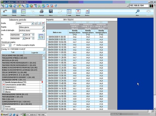 Das Überwachungs- und Kontrollsystem nutzt seine Kapazitäten, um die Temperatur in allen Produktionsprozessen zu überwachen und um eventuelle Fehlermeldungen auszugeben, wobei es nach einer bestimmten Priorität vorgeht. In der Regel gehen täglich ein Dutzend Fehlermeldungen ein, erklärt Gian Marco Passerini. Die Möglichkeit, den bisherigen Temperaturverlauf zu speichern, ist für uns immer dann wichtig, wenn der Kunde eine Überprüfung wünscht und im Rahmen der Rückverfolgbarkeit des Produktes der Temperaturverlauf bestimmter Produktchargen gefragt ist. TelevisNet ermöglicht uns, dies mit hoher Effizienz umzusetzen, so Passerini weiter.