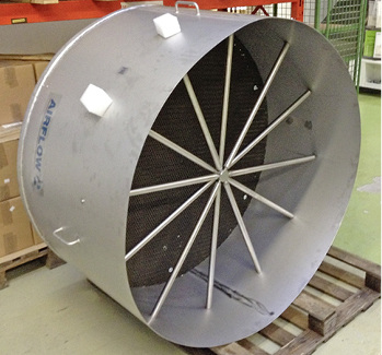 Auf der Suche nach einer Möglichkeit, die erforderlichen Prüfungen durchzuführen, ohne den Terminal lahmzulegen, wurden die Experten der Airflow Lufttechnik GmbH, Rheinbach, einbezogen. Die Situation vor Ort wurde aufgenommen und anschließend nach einer praktikablen Lösung gesucht. Ein Problem dabei war, dass die Größe der Ventilatoren den Durchmesser des Messgerätes bestimmt. Gleichzeitig musste es transportabel sein und auch durch die Türen und Gänge auf dem Weg nach oben passen – schließlich sollte das Gerät aufs Dach geschafft werden. Und auch dort war Mobilität wichtig, da ja nicht nur ein Entrauchungskamin, sondern 86 Entrauchungskamine gemessen werden mussten.