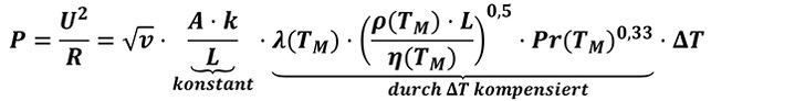 Die Heizleistung ist dann nur noch von der Quadratwurzel der Strömungsgeschwindigkeit abhängig (siehe auch [1], S. 183).