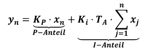 Diese vereinfachte Gleichung ist nun klar in P- und I-Anteil aufgeteilt und lässt sich als Regelalgorithmus in C-Code abbilden.