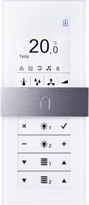 Zeitgemäße architektonische Konzepte für Nutzgebäude betonen häufig designorientierte Lösungen. Das Thermokon-Produktportfolio enthält deshalb neben Standardprodukten auch diverse gehobene Lösungen. Ein Allrounder mit hohem Designanspruch ist thanos. Das Touch-Raumbediengerät dient zur Temperatur- und optionalen Feuchteerfassung sowie zur integrierten Bedienung von HLK, Beleuchtung und Jalousien. Vier digitale Eingänge für die Aufschaltung weiterer Geräte – so z. B. für die ECO-Anzeige, zur Darstellung des Effizienzstatus oder das Einblenden individueller Grafiken – sorgen dabei für Flexibilität. Die edle Optik macht das Raumbediengerät auch für anspruchsvolle Umgebungen geeignet.